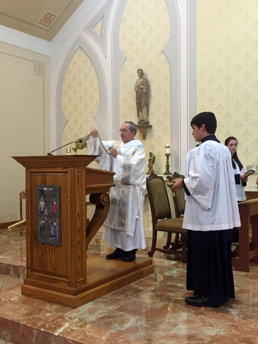Deacon Soileau incenses the Gospel for the first time. (Photo from Mass of Thanksgiving)