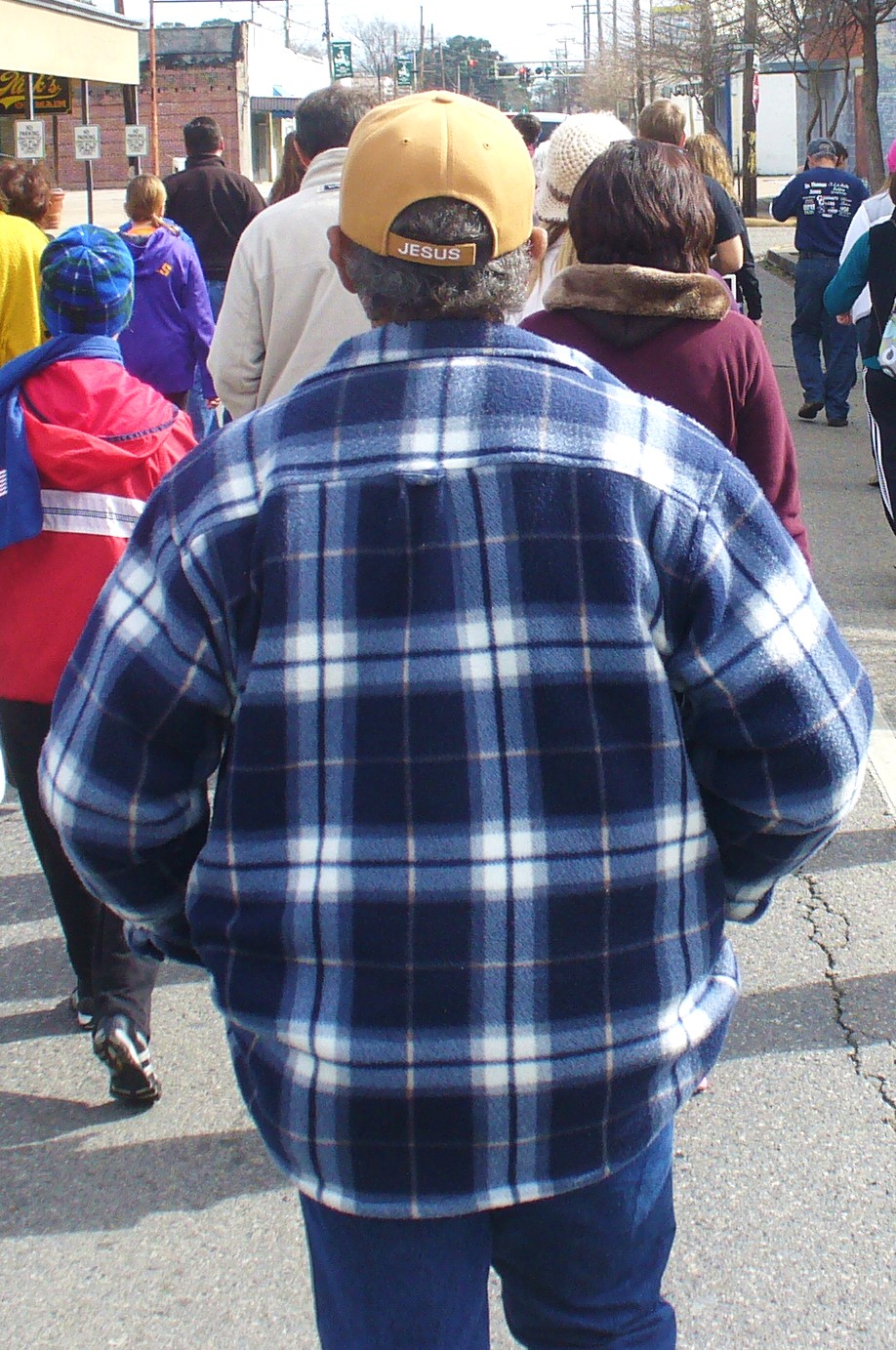 The back strap of his cap says it all: Jesus!