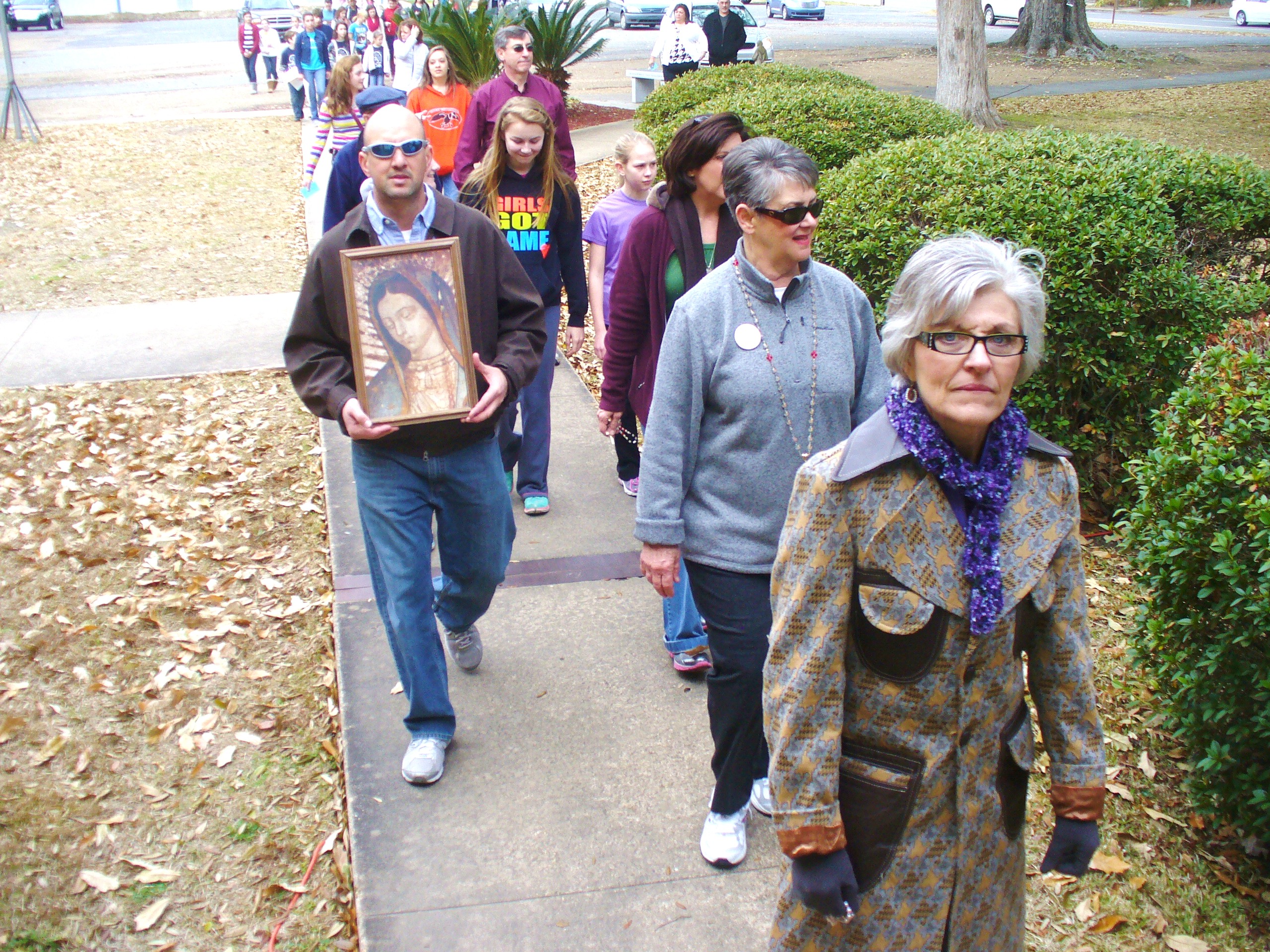 The glare hides her, but Our Lady of Guadalupe was with us, too.