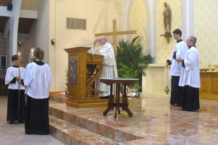 Deacon Gene LeBoeuf proclaims the Gospel.